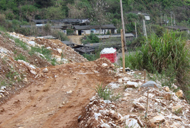 圖1沿著這樣的山路,4驅(qū)的汽車約20分鐘,到達(dá)大理石礦山的開采點(diǎn)。