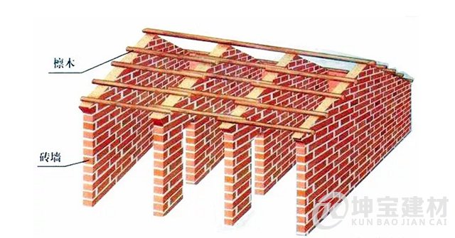 另外一種棒式框架是檁條(purlin)持力,在我國(guó)廣泛采用。如直接將檁條擱在橫向山墻上,形成硬山擱檁。然后在檁條上鋪設(shè)與其方向垂直的椽條,再鋪望板,***后再考慮瓦屋面做法。
