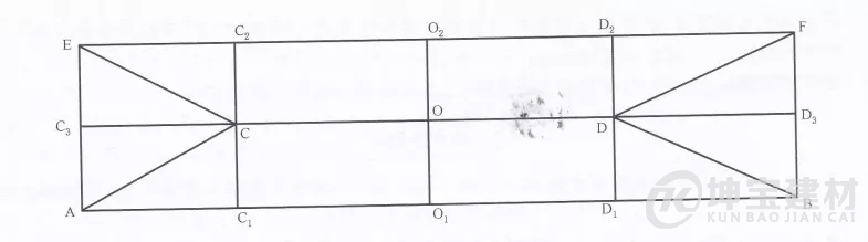 圖中E、A、B、F為坡屋面四角端點,CD為屋脊兩端點,O為屋脊中心點。