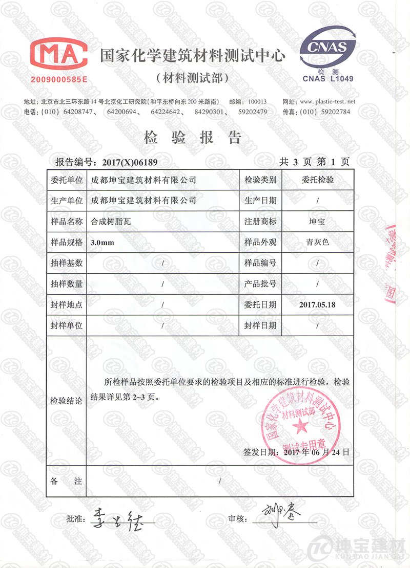 成都坤寶建筑材料有限公司一直堅(jiān)持走“綠色、低碳、環(huán)保、節(jié)能”宗旨,致力在各界政府行業(yè)協(xié)會(huì)的幫助下,成為315誠信品牌單位,是成都坤寶建筑材料有限公司的榮耀,也是““坤寶合成樹脂瓦”品牌的見證。