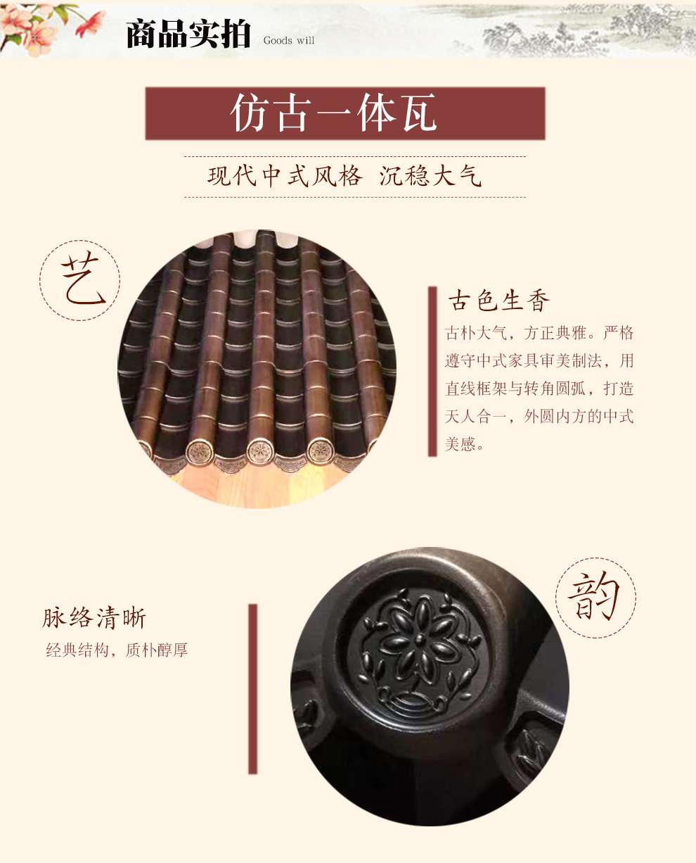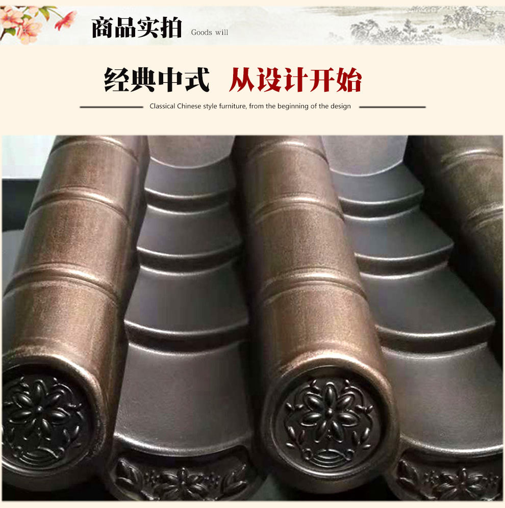 用途:用于仿古建筑、景走廊、徽派建筑、酒店裝修、圍墻墻頭、涼亭屋面等