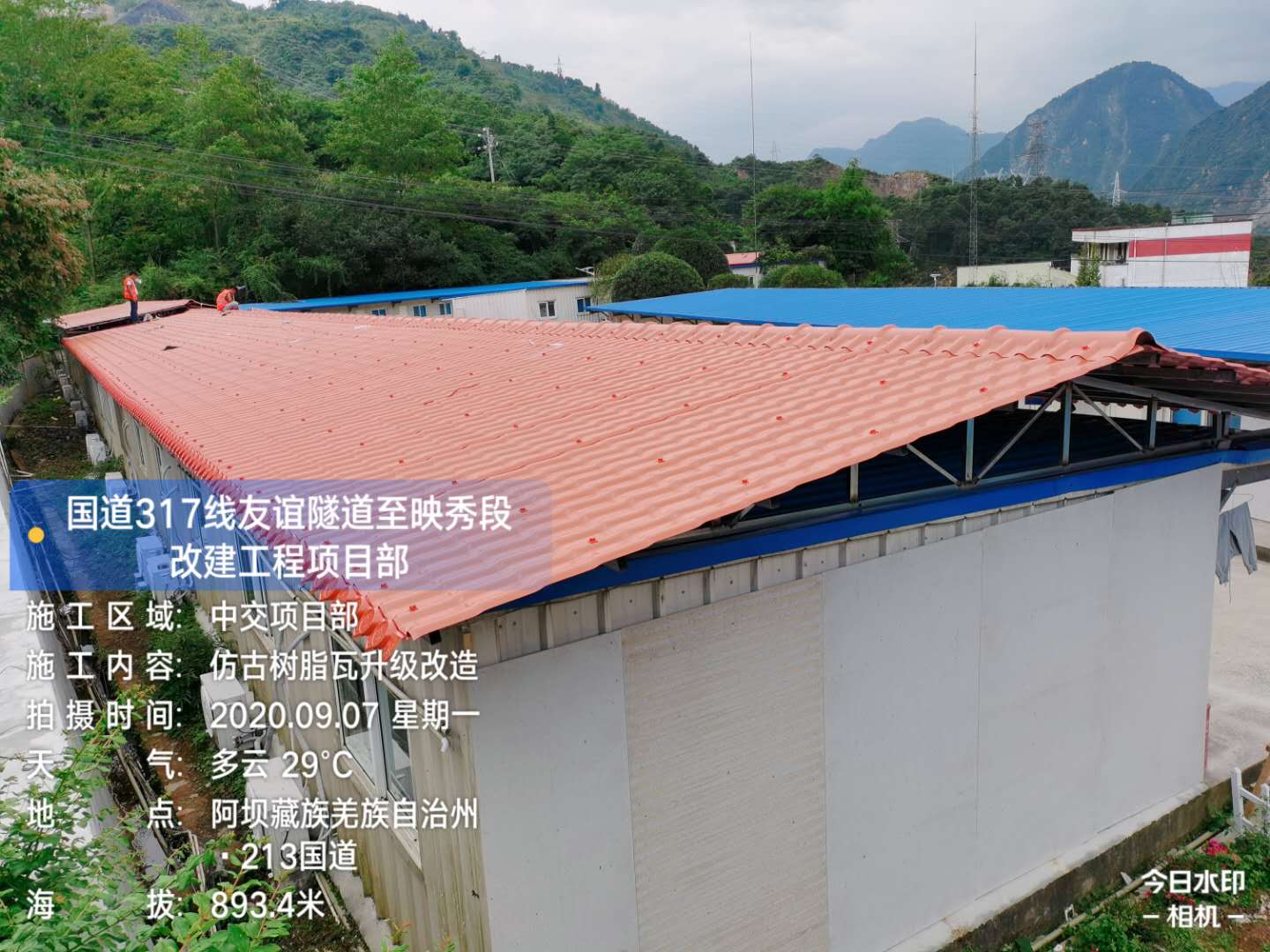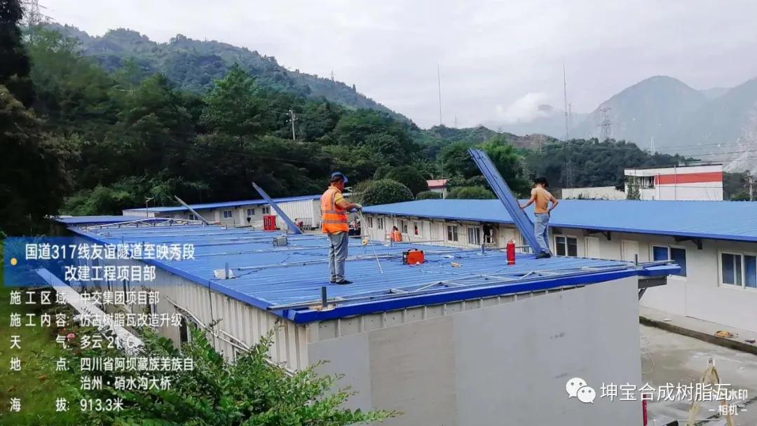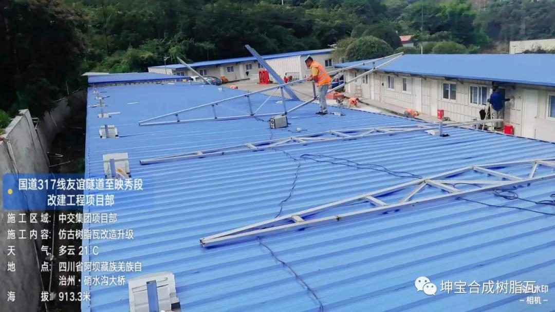 中交路橋集團國道317線隧道至映秀段改建工程項目部屋頂加蓋樹脂瓦工程,接下來看樹脂瓦加蓋屋面的部分效果!