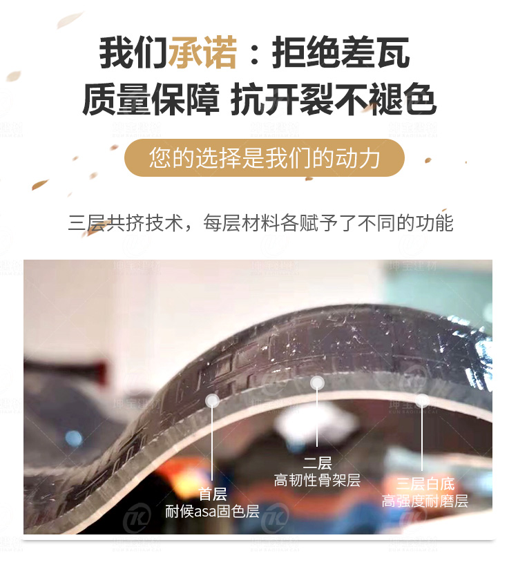 三層白底合成樹脂瓦_(dá)3.0mm廠家直銷_高性價(jià)比