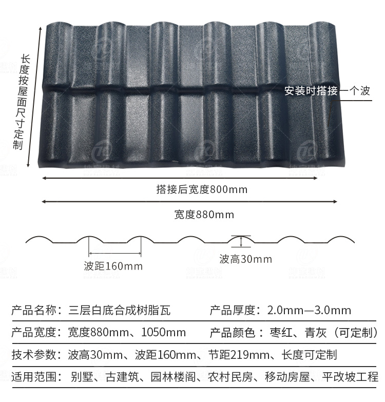 規(guī)格:880型白底三層樹脂瓦