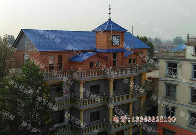 日期:2016-10-21 10:22:23 點擊:725甘肅某地金蘋果幼兒園通過總體規劃和申報,獲批擴建一層樓,為了更好的隔熱和防滲漏,采用坡屋頂加蓋瓦的建筑形式, 屋面材料 就是選用的藍色 ASA合成樹脂瓦 ,外墻裝修材料是泥土色的掛壁板。所有建材均屬于環保節能新型產品,無污染,無有害物質釋放,以保