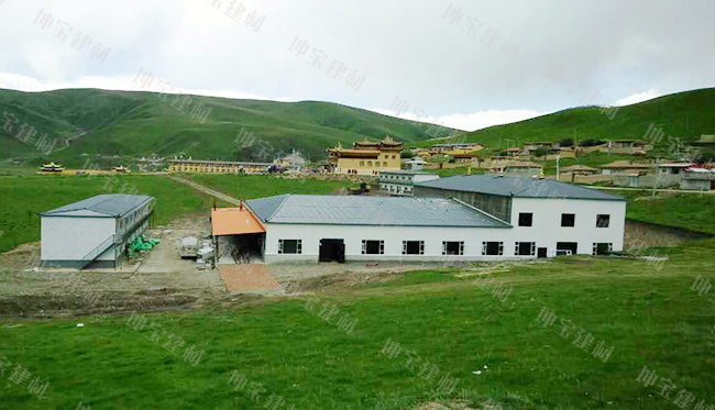 日期:2016-08-03 10:13:57 點擊:749最新項目跟進消息,阿壩州麥爾瑪鄉朗措瑪寺3500平米寺廟擴建項目(也就是朗措瑪寺講經堂的搭建工程)已經完工,下面坤寶建材小編就把完工照片分享給大家,讓我們來一睹為快。 青灰色的坤寶樹脂瓦為朗措瑪寺增添禪意,佛光普照下,宛若袈裟加身,莊重而神圣。