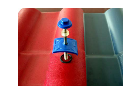 固定瓦時應先將防水圈置于緊固件后面凹槽內(nèi),電鉆要與瓦面垂直,緊固瓦時釘?shù)乃删o要適中,完畢后再安裝防水帽且要上緊。