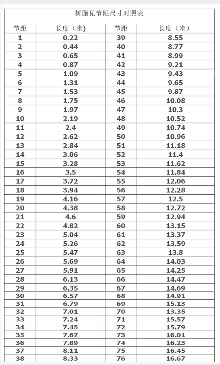 【回答】首先樹脂瓦長度是可以任意定制長度:按節(jié)距的倍數訂做(圖2節(jié)距表定做樹脂瓦的長度)