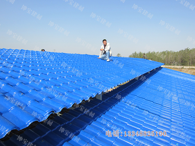 合成樹脂瓦采用高耐候性ASA工程樹脂、韌性骨架層和高強度PVC耐磨層三層共擠壓制而成;有2.5mm-3.0mm多種厚度可選,寬度有880mm和1050mm兩種,默認長度為6130mm,也可根據(jù)需要任意裁剪。